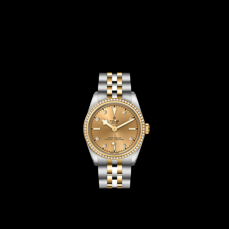 - 旋入式上鏈錶冠,飾以浮雕帝舵表玫瑰標誌;精鋼覆有0.1毫米黃金薄層